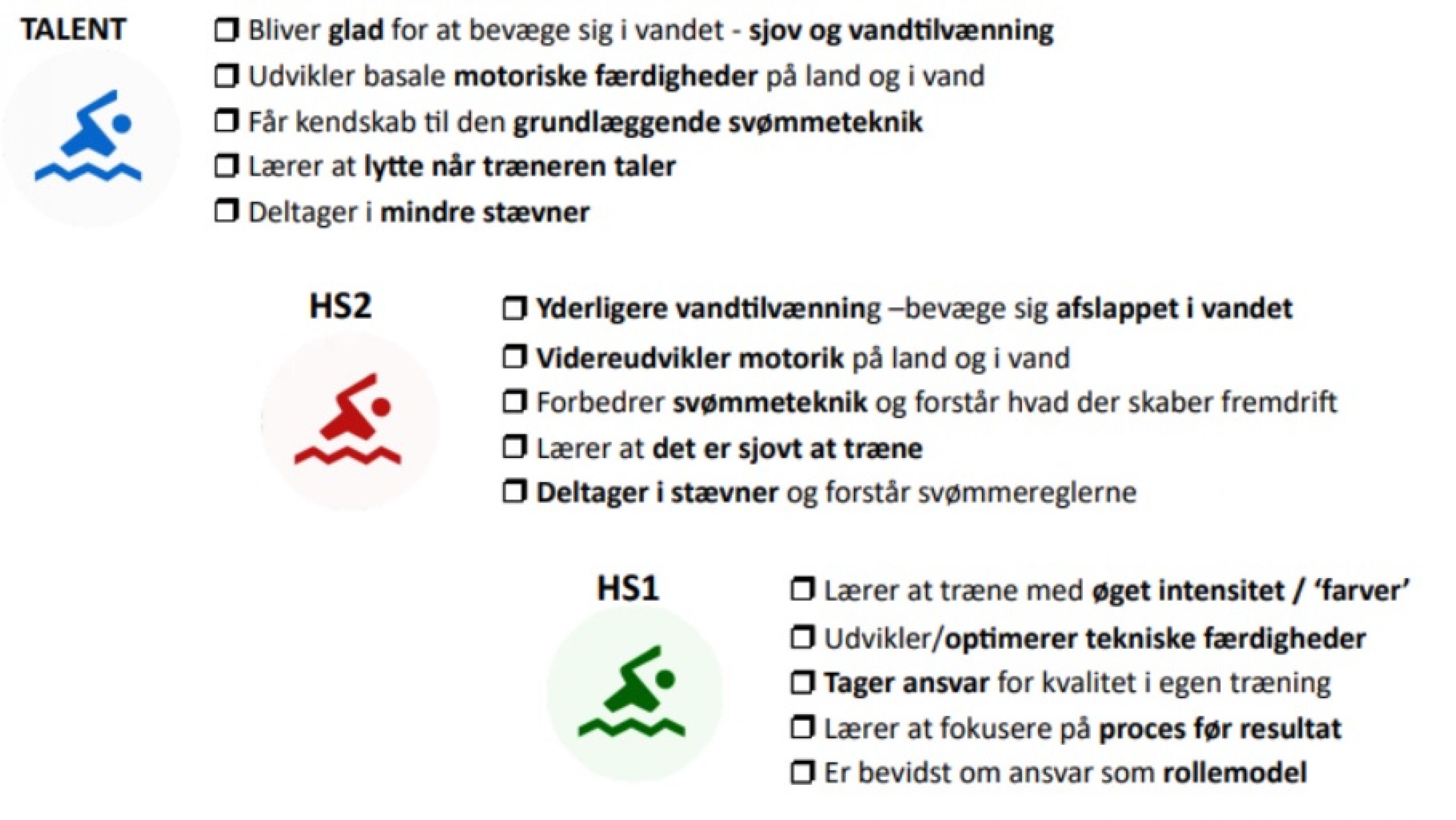 Der er 3 forskellige hold i konkurrenceafdelingen. Det første du møder er Talentholdet, dernæst kommer HS2 og HS1. Nedenfor kan du læse om hvilke fokuspunkter der arbejdes med for de 3 hold.